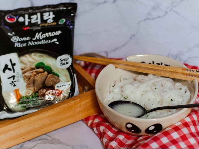 Yang ke tiga ada ARIRANG BONE MARROW Rice Noodle, ini favorit suamiku Kwetiau kuah dengan rasa dan aroma sum-sum tulang. Pecinta gurih wajib banget cobain karna gurih nya sangat berasa dan cocok untuk dinikmati bareng keluarga apalagi pas ujan ujan.. hmmm.. enak..